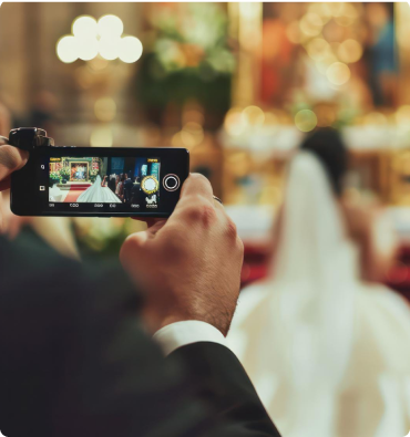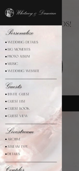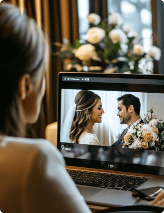 Couples could stream their wedding live, with the ability to integrate personalized content, such as slideshows, couple bios, and stories to engage guests emotionally.