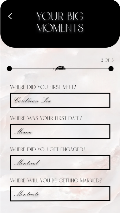 Couples needed a single platform to manage digital invitations, guest lists, & a wedding registry, simplifying the planning process. Managing various aspects of a virtual wedding was complex and time-consuming.